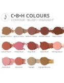 Pro tip: Why do we Highlight and Contour? We do this to create definition and dimension. Highlighters are usually applied to areas that you wish to bring forward and accentuate such as: the brow bone, cheekbones, inner eye corners and cupid’s bow by adding an illuminating glow. Contour colours are usually applied to areas you wish to push back or disguise such as: the hollows of cheeks, hairline, temples, jawline, and sides of the nose to add extra depth and multi-dimensions. Blushers are usually applied to the cheek area to add some natural colouring and flush back into the cheeks for that gorgeous healthy-looking skin and youthful glow, but our CBH Blush range is so flattering, that they make beautiful eyeshadow shades to.